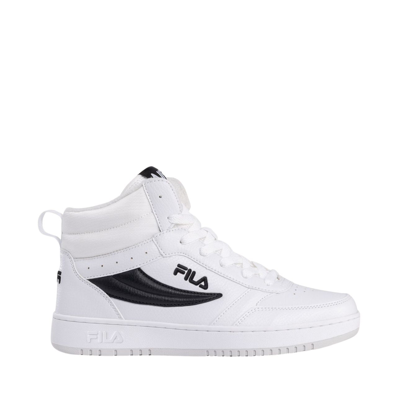 Fila Rega NF – białe dziecięce buty w stylu retro z wysokim kołnierzem