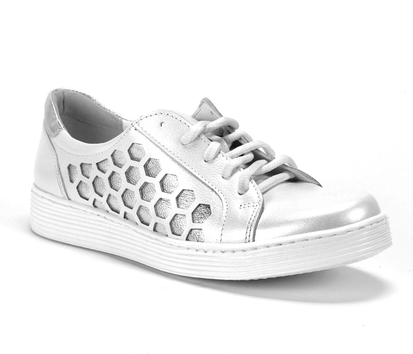 These white Claudia Domeno women's sneakers are ideal for those who appreciate style and comfort. Made of high quality natural leather, they guarantee durability and wearing comfort. With their classic white color and fashionable design, these sneakers will be the perfect complement to casual and sporty outfits for spring and summer. The lace-up closure ensures a perfect fit, while the sturdy synthetic sole makes them indispensable for everyday wear. Opt for the best quality and add these stylish sneakers by Domeno to your collection now!