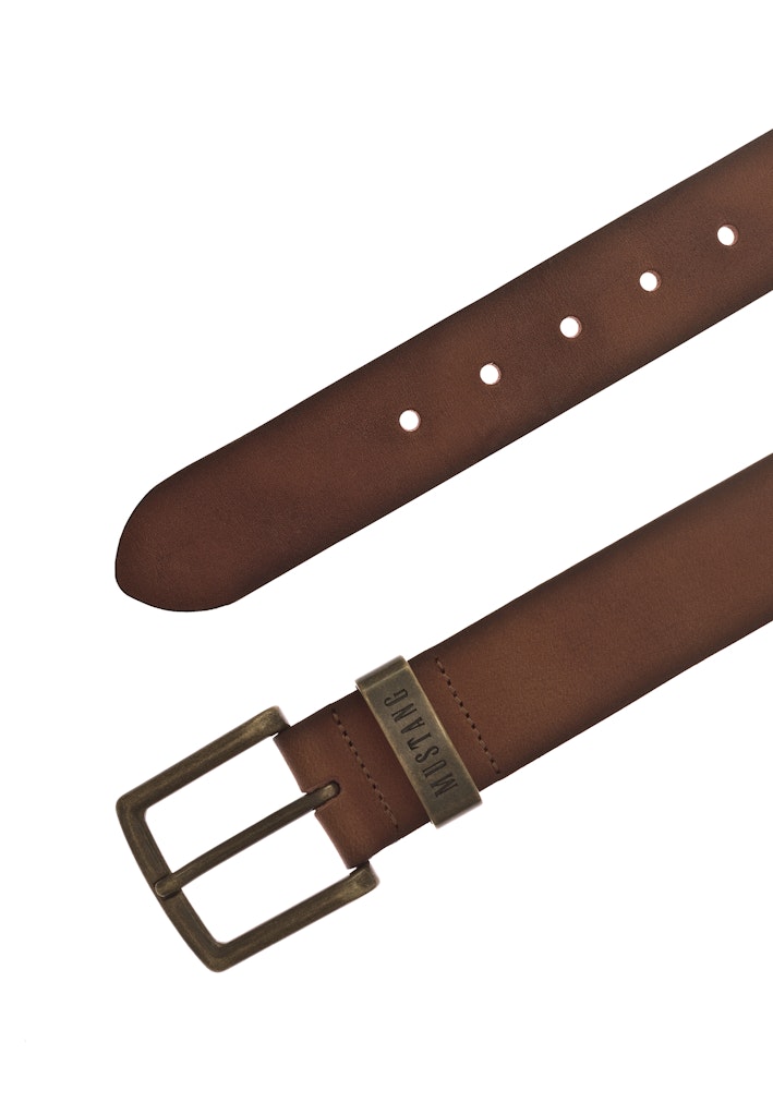 .The Mustang MG2085L22-690 men's belt is an accessory that will perfectly complement both everyday and more elegant combinations. It was made entirely of natural leather, which guarantees durability and resistance to intensive use. With a width of 4 cm, the belt steadily holds pants, while looking proportional and matching a variety of cuts - from classic jeans to chinos or fabric pants. The cognac color gives it a unique character - it's a hue that blends perfectly with denim, navy blue, shades of gray or white, highlighting the styling without being too dominant. The metal buckle in the shade of aged brass, together with the signature Mustang sleeve, adds a stronger accent that draws attention. This is a belt that will work well for both casual and more formal occasions, offering a balance between elegance and casualness. If you are looking for an accessory that is versatile and timeless, the MG2085L22-690 model in cognac will be the perfect choice.