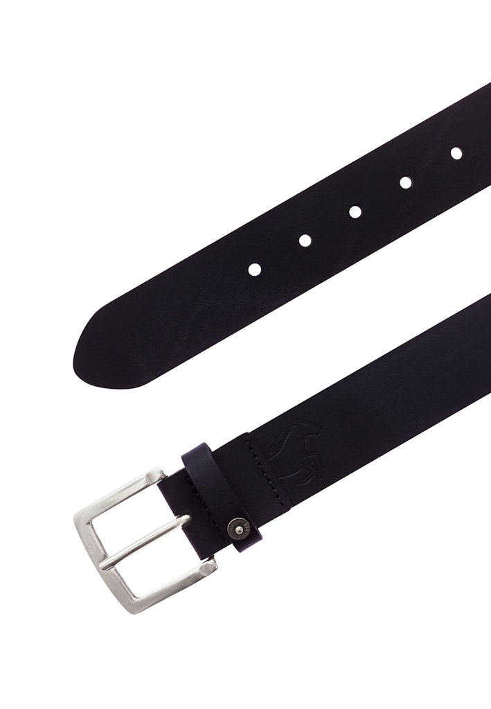 Black men's natural leather belt - silver buckle