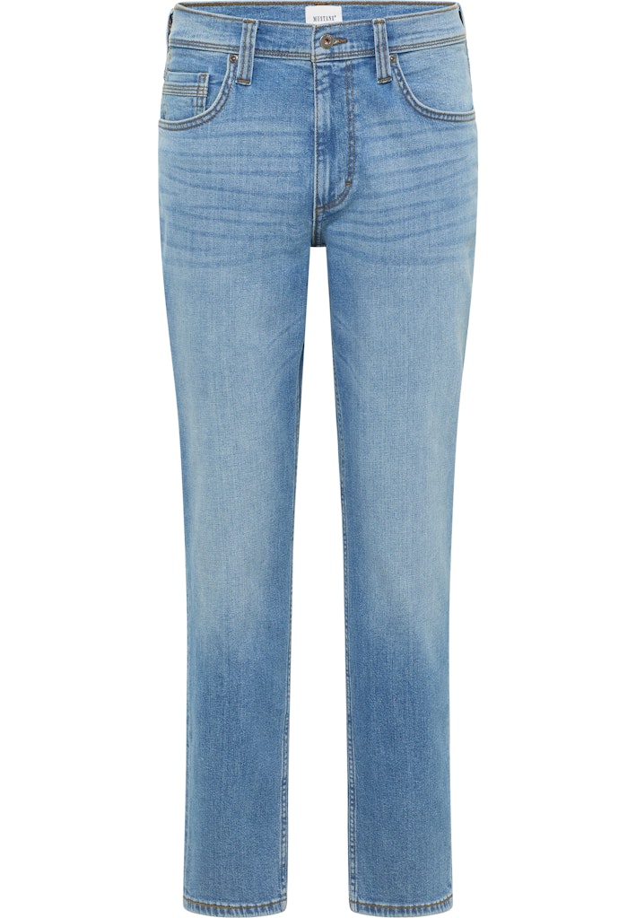 .Men's Mustang Washington jeans 1016441-5000-403 are an ideal choice for men who value casual style and comfort. Made of high-quality denim, whose composition is dominated by cotton with added elastane, they provide comfort, durability and light elasticity. The light blue hue with pronounced rubbing gives the pants a fresh and casual feel, making them perfect for everyday styling, especially in spring and summer. The regular fit cut with a straight leg guarantees a classic look and full freedom of movement. The pants feature five practical pockets, strong stitching and a classic button and zipper closure. On the back there is a leather patch with the Mustang logo, which adds authenticity and emphasizes the brand's denim style. The Washington model in light denim goes well with a T-shirt, sweatshirt or casual shirt, creating lightweight, everyday ensembles. These are versatile jeans worth having in your closet.