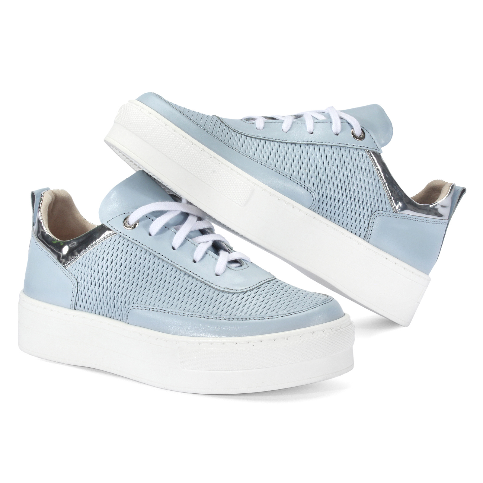 These blue DALIA Domeno women's sneakers are an absolute must-have this spring! Made of high-quality natural leather, they will not only provide you with unparalleled style, but also maximum wearing comfort. The lace-up closure will allow you to perfectly adjust the shoes to your foot, and the lining, also made of natural leather, will ensure softness and breathability. Add a piece of luxury to your closet with the Domeno brand and be ready for fashion conquests!
